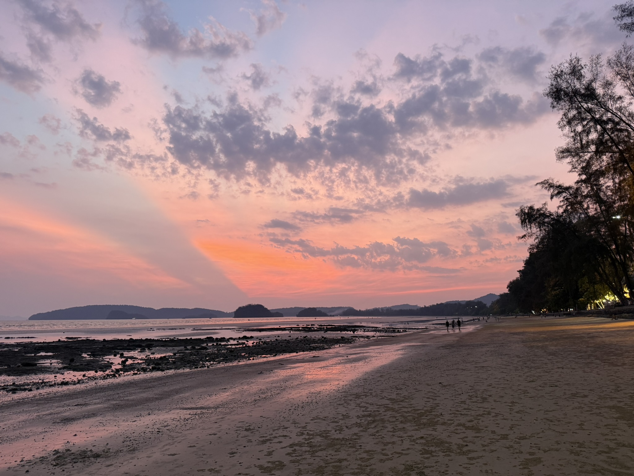 This beach is a short walk from my condo in Ao Nang, Krabi, Thailand. Sunset and low tide. I love this place for inner reflection, to connect with the divine universe.